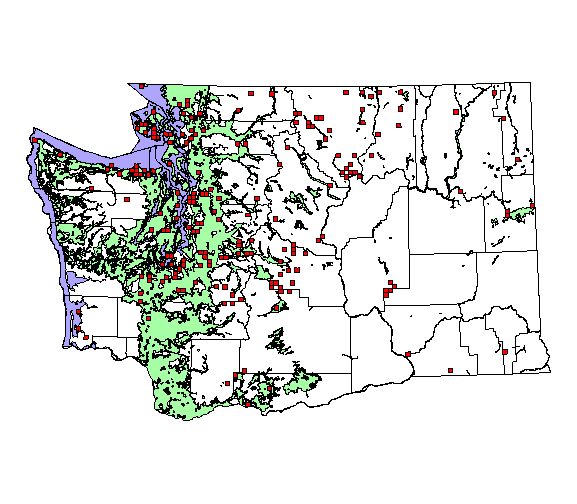 Breeding Bird Atlas blocks All observations (not just breeding activity) between 1987-1995 (9 square miles/block) |