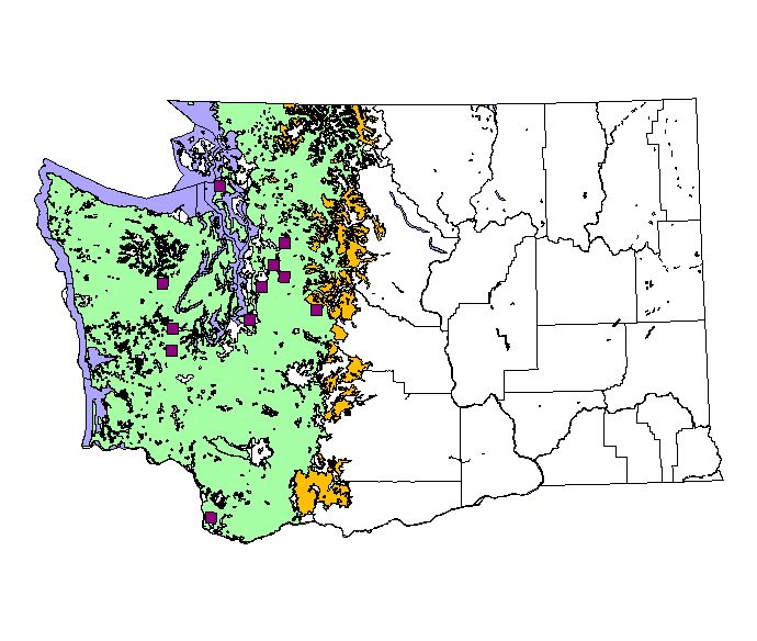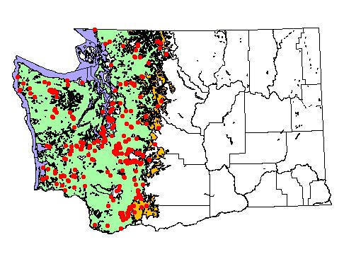 Washington Gap Analysis Project point locations All observations between 1800's - 1995 Historic record locations: 303 Total number of records: 611 |