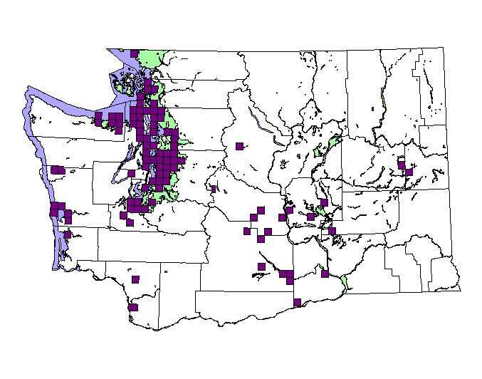 NatureMapping observations by townships during the breeding season. (36 square miles = township) |