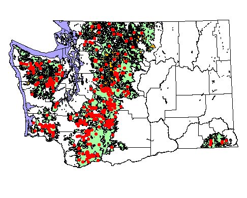Washington Gap Analysis Project point locations All observations between 1800's - 1995 Historic record locations: 436 Total number of records: 1,198 |