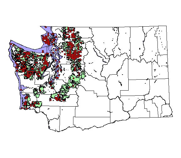 Breeding Bird Atlas blocks All observations (not just breeding activity) between 1987-1995 (9 square miles/block) |