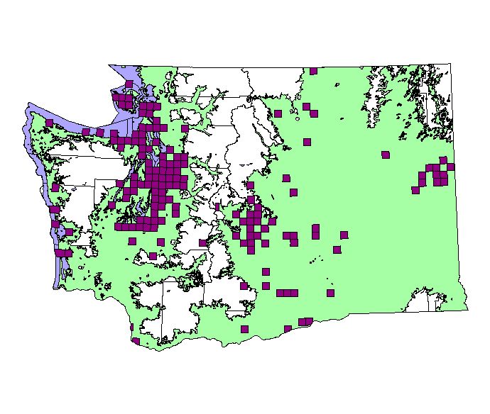 Breeding Bird Atlas blocks All observations (not just breeding activity) between 1987-1995 (9 square miles/block) |