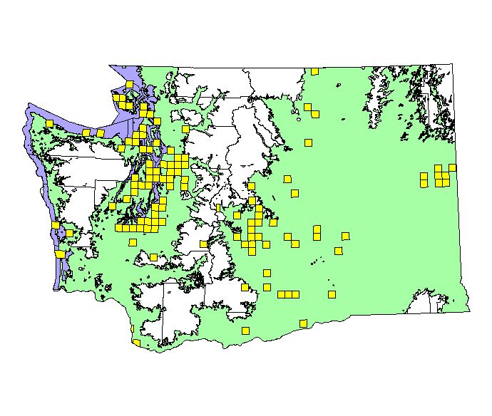 NatureMapping observations by townships during the breeding season. (36 square miles = township) |