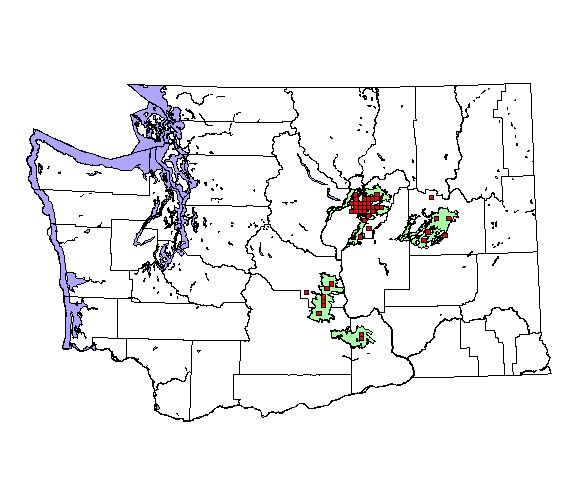NatureMapping observations by townships during the breeding season. (36 square miles = township) No observations were reported during the breeding season. |