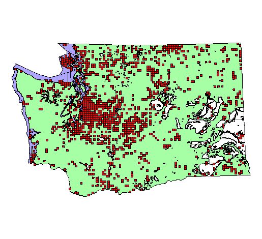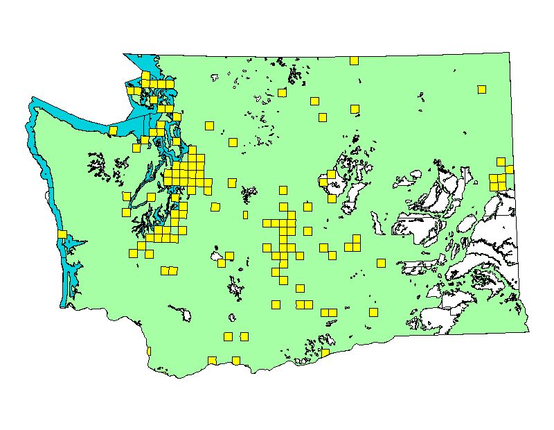 Breeding Bird Atlas blocks All observations (not just breeding activity) between 1987-1995 (9 square miles/block) |