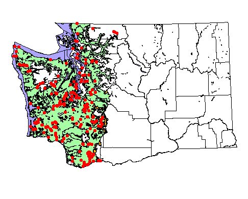 Washington Gap Analysis Project point locations All observations between 1800's - 1995 |