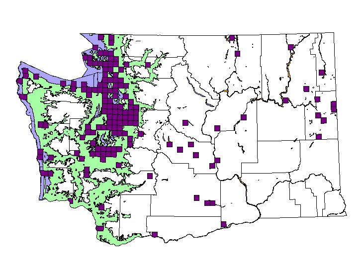 NatureMapping observations by townships during the breeding season. (36 square miles = township) |