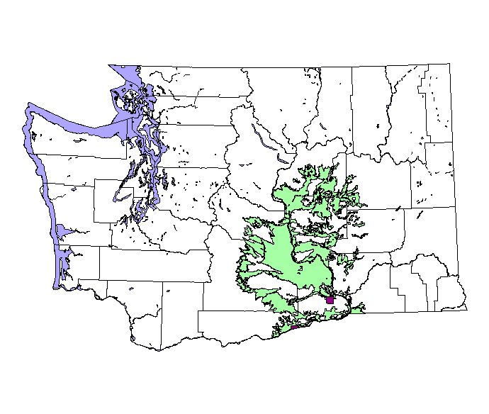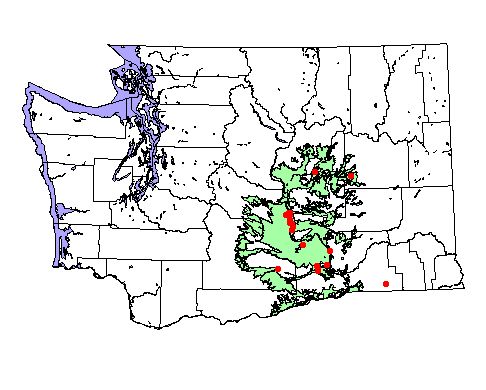 Washington Gap Analysis Project point locations All observations between 1800's - 1995 Historic record locations: 11 Total number of records: 26 |