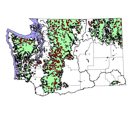 NatureMapping observations by townships during the breeding season. (36 square miles = township) |