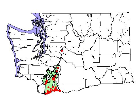 Washington Gap Analysis Project point locations All observations between 1800's - 1995 Historic record locations: 67 Total number of records: 142 |