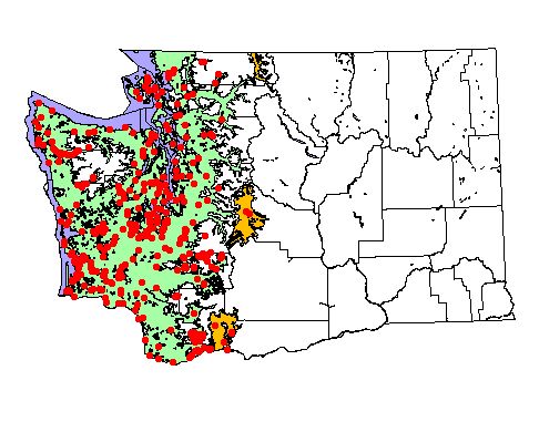 Washington Gap Analysis Project point locations All observations between 1800's - 1995 Historic record locations: 374 Total number of records: 731 |