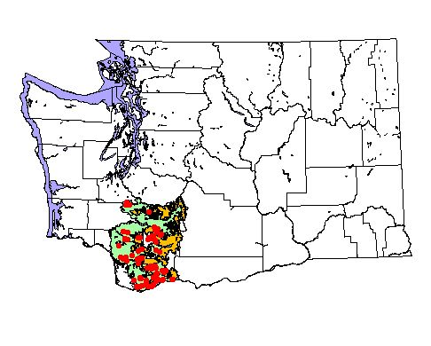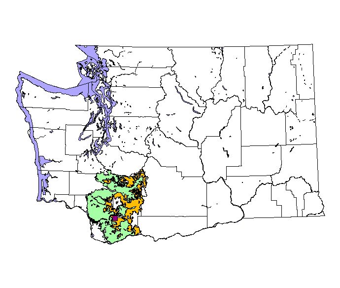 Washington Gap Analysis Project point locations All observations between 1800's - 1995 Historic record locations: 72 Total number of records: 146 |