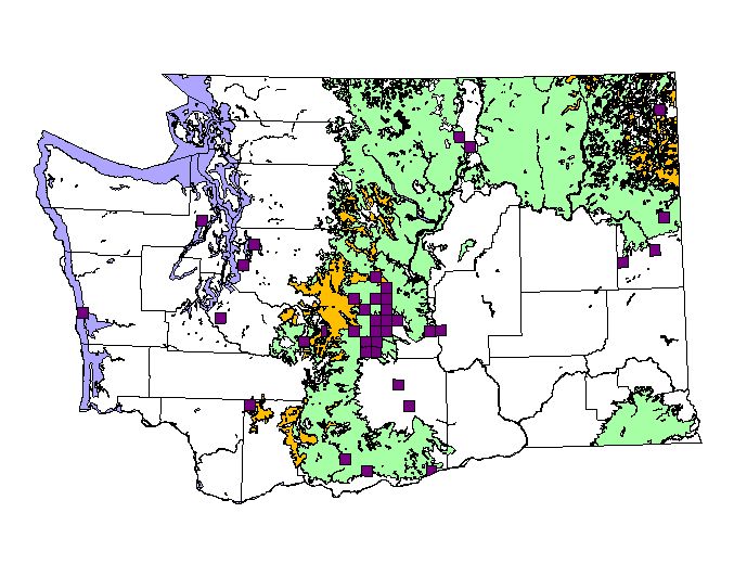 NatureMapping observations by townships during the breeding season. (36 square miles = township) |