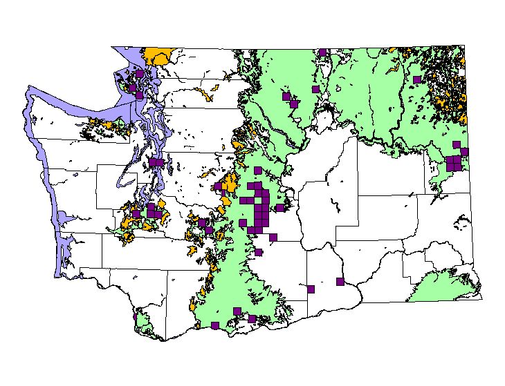 NatureMapping observations by townships during the breeding season. (36 square miles = township) |