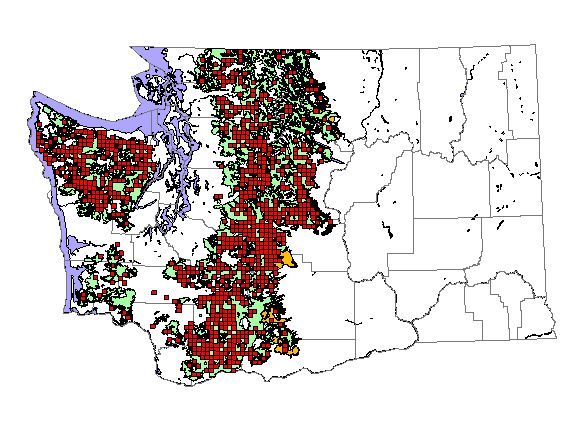NatureMapping observations by townships during the breeding season. (36 square miles = township) |