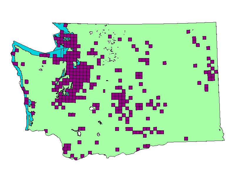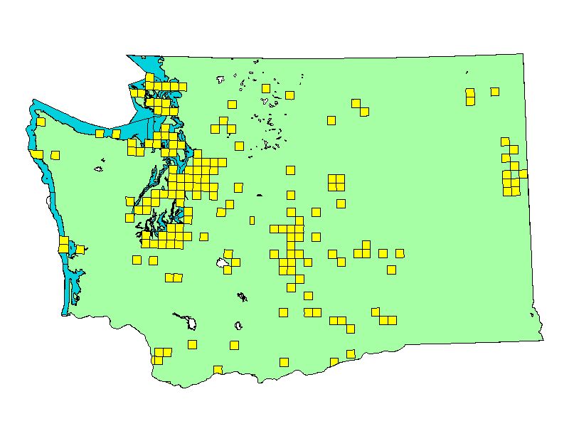 Breeding Bird Atlas blocks All observations (not just breeding activity) between 1987-1995 (9 square miles/block) |