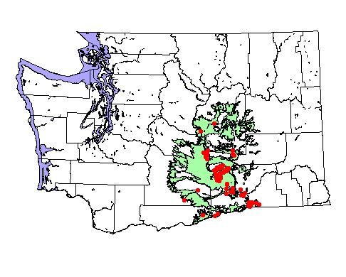Washington Gap Analysis Project point locations All observations between 1800's - 1995 Historic record locations: 106 Total number of records: 222 |