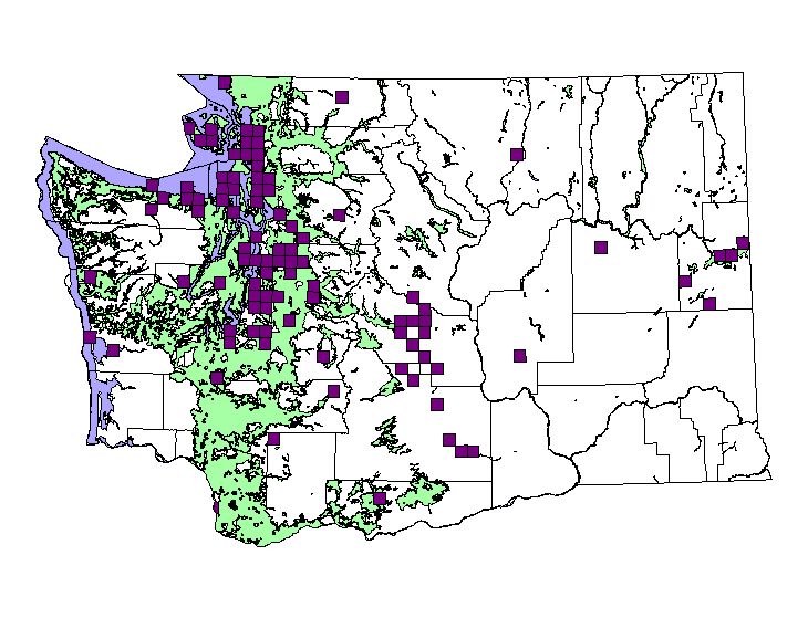 NatureMapping observations by townships during the breeding season. (36 square miles = township) |