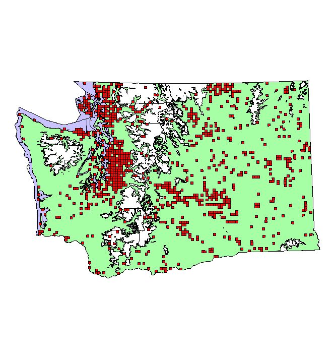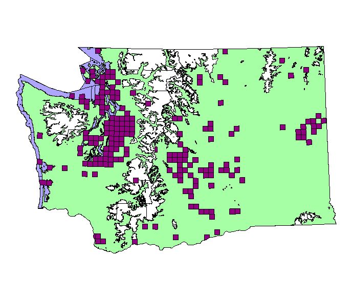 Breeding Bird Atlas blocks All observations (not just breeding activity) between 1987-1995 (9 square miles/block) |