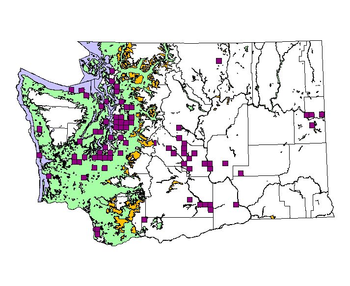 NatureMapping observations by townships during the breeding season. (36 square miles = township) |