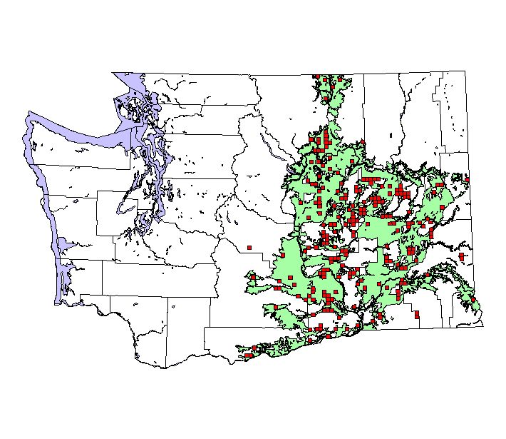 NatureMapping observations by townships during the breeding season. (36 square miles = township) |