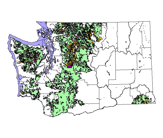 Washington Gap Analysis Project point locations All observations between 1800's - 1995 Historic record locations: 436 Total number of records: 1,198 |