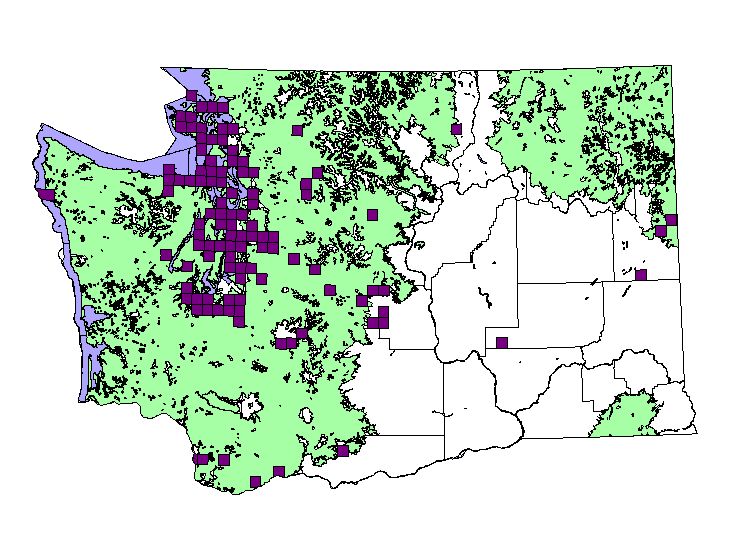Breeding Bird Atlas blocks All observations (not just breeding activity) between 1987-1995 (9 square miles/block) |