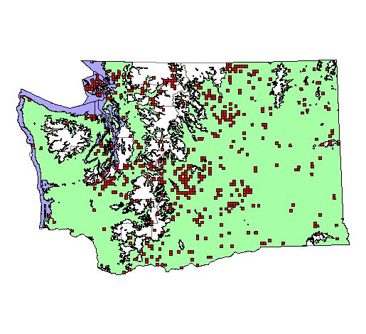 Breeding Bird Atlas blocks All observations (not just breeding activity) between 1987-1995 (9 square miles/block) |