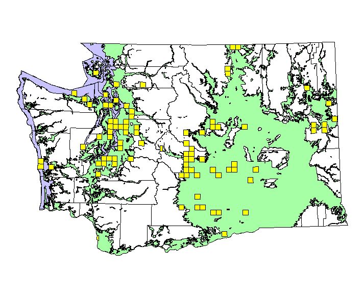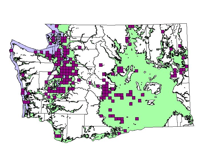 NatureMapping observations by townships during the breeding season. (36 square miles = township) |