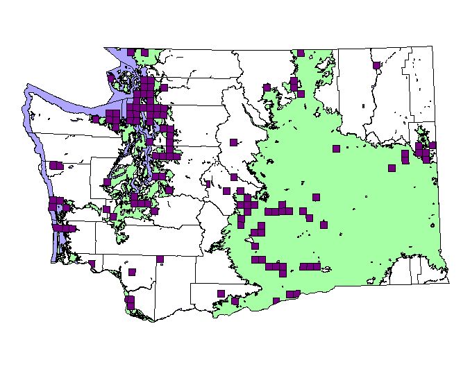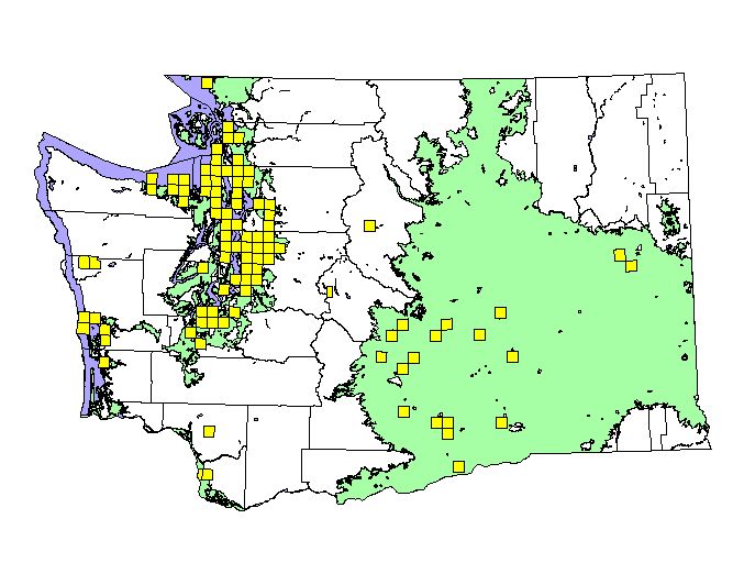 Breeding Bird Atlas blocks All observations (not just breeding activity) between 1987-1995 (9 square miles/block) |
