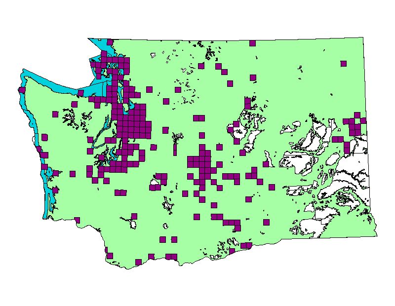 NatureMapping observations by townships during the breeding season. (36 square miles = township) |