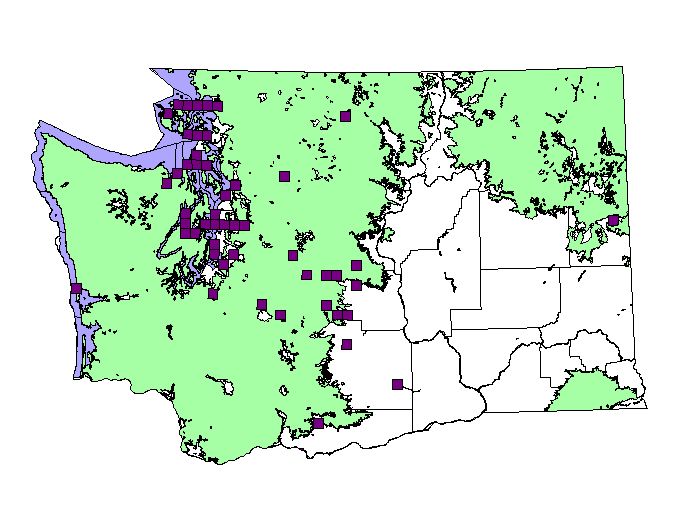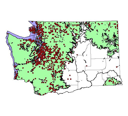 NatureMapping observations by townships during the breeding season. (36 square miles = township) |