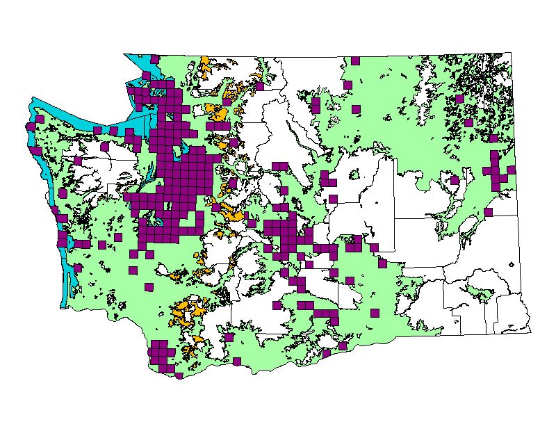 NatureMapping observations by townships during the breeding season. (36 square miles = township) |