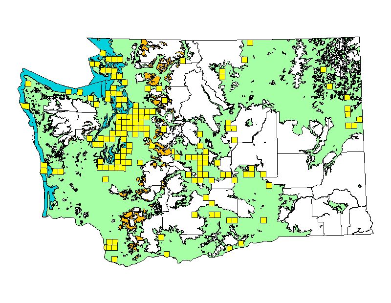Breeding Bird Atlas blocks All observations (not just breeding activity) between 1987-1995 (9 square miles/block) |