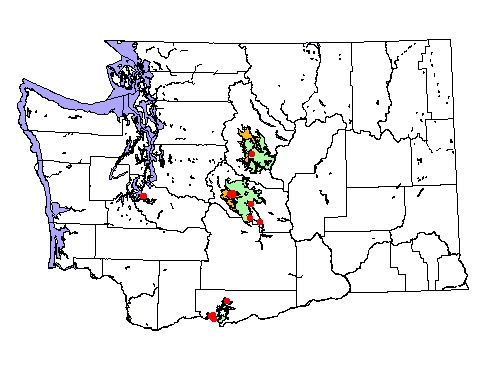 Washington Gap Analysis Project point locations All observations between 1800's - 1995 Historic record locations: 18 Total number of records: 20 |