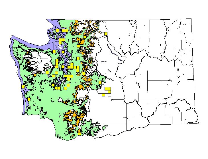 NatureMapping observations by townships during the breeding season. (36 square miles = township) |