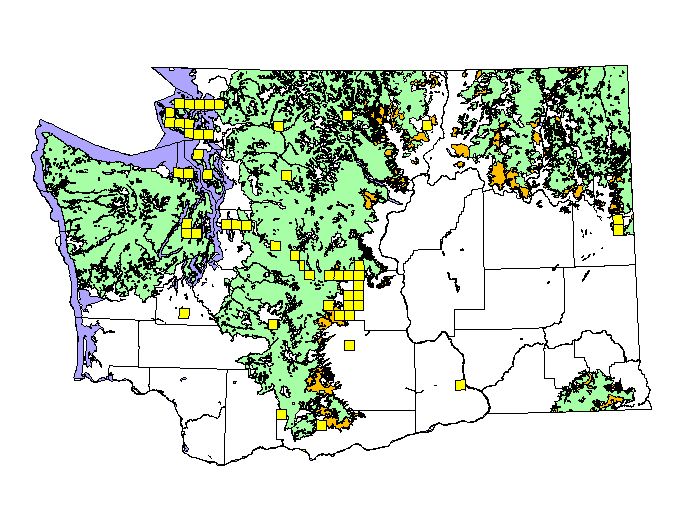 NatureMapping observations by townships during the breeding season. (36 square miles = township) |