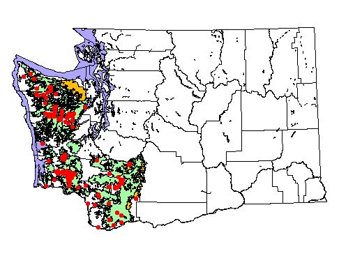 Washington Gap Analysis Project point locations All observations between 1800's - 1995 Historic record locations: 130 Total number of records: 495 |