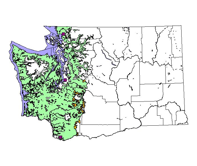Washington Gap Analysis Project point locations All observations between 1800's - 1995 |