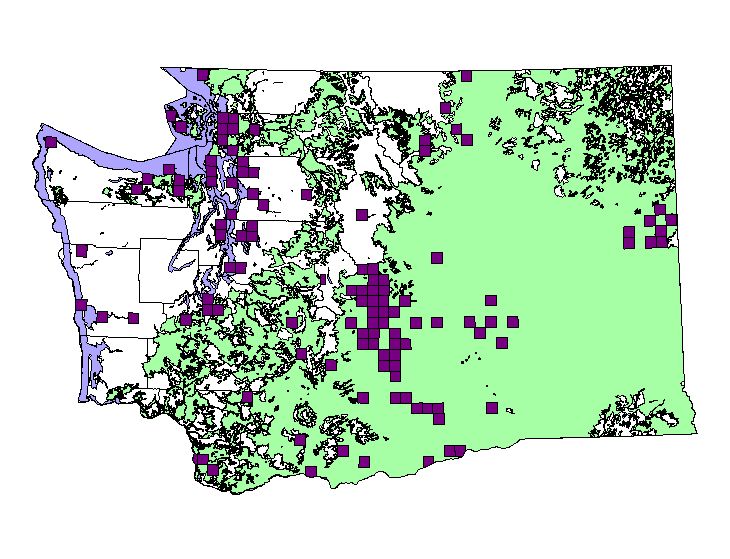 NatureMapping observations by townships during the breeding season. (36 square miles = township) |