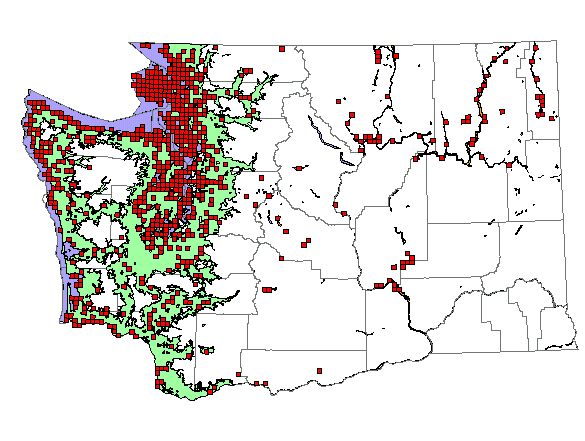 NatureMapping observations by townships during the breeding season. (36 square miles = township) |