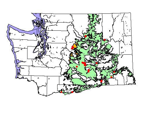 Washington Gap Analysis Project point locations All observations between 1800's - 1995 Historic record locations: 31 Total number of records: 31 |