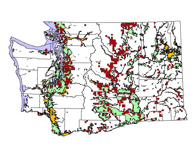 NatureMapping observations by townships during the breeding season. (36 square miles = township) |