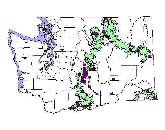 NatureMapping observations by townships during the breeding season. (36 square miles = township) |