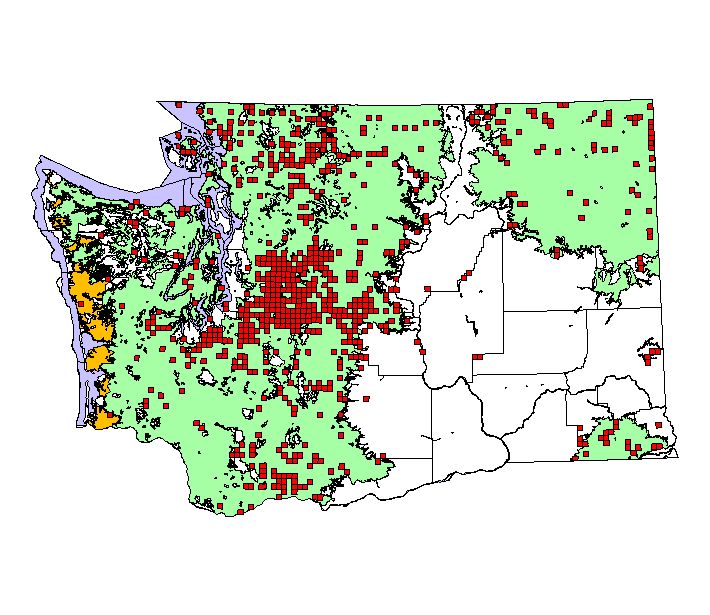 NatureMapping observations by townships during the breeding season. (36 square miles = township) |