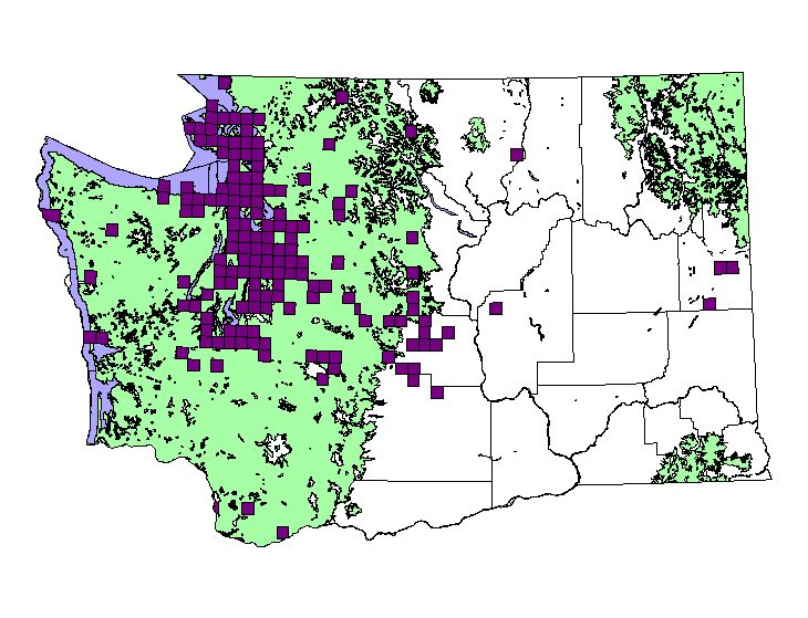 NatureMapping observations by townships during the breeding season. (36 square miles = township) |