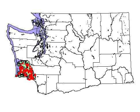 Washington Gap Analysis Project point locations All observations between 1800's - 1995 Historic record locations: 120 Total number of records: 135 |