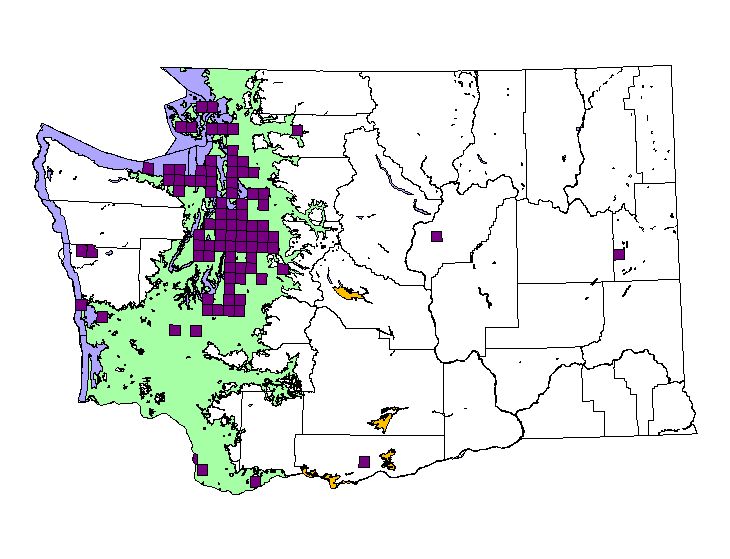 Breeding Bird Atlas blocks All observations (not just breeding activity) between 1987-1995 (9 square miles/block) |