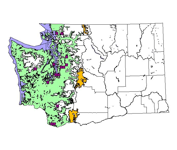 Washington Gap Analysis Project point locations All observations between 1800's - 1995 Historic record locations: 374 Total number of records: 731 |