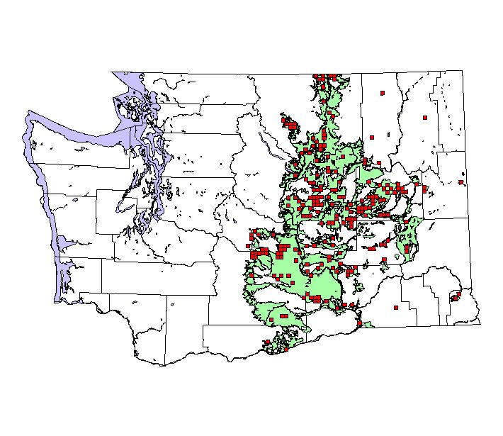 NatureMapping observations by townships during the breeding season. (36 square miles = township) |